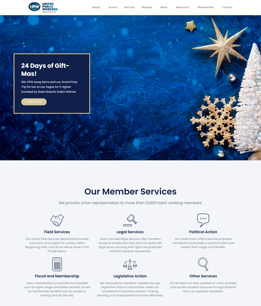 United Public Workers er en fagforening, der repræsenterer mere end 12.000 medlemmer på Hawaii. Se deres nye hjemmeside her.